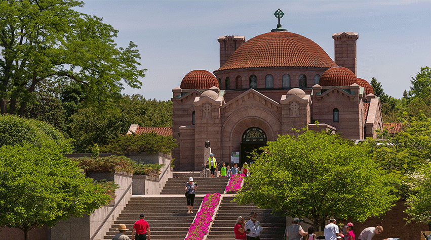 Modeled after the Hagia Sophia Grand Mosque in Istanbul, the Memorial Chapel of the Lakewood Cemetery is an architectural jewel of the Midwest. Minneapolis architect Harry Wild Jones was awarded the project and construction began in late 1908. The chapel’s distinct roof features Spanish roll tile, its walls are made of red St. Cloud granite and its entrance – two double solid bronze doors – is decorated with ancient religious symbols.