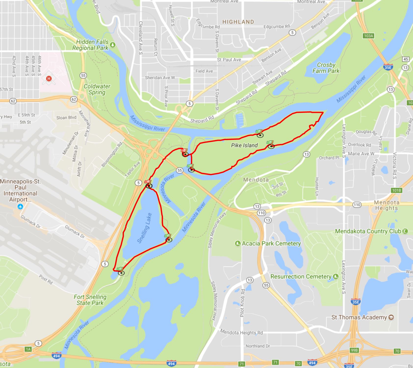 Hop on the Blue Line Light Rail train in downtown Minneapolis and head to Fort Snelling for striking views and uninterrupted focus. Loop around Pike Island and Snelling Lake while breathing in the harmonic nature of the Minnesota and Mississippi Rivers and their surrounding landscapes. Once you've finished your run, jump back on the Blue Line train for an easy and relaxing ride back to the city.