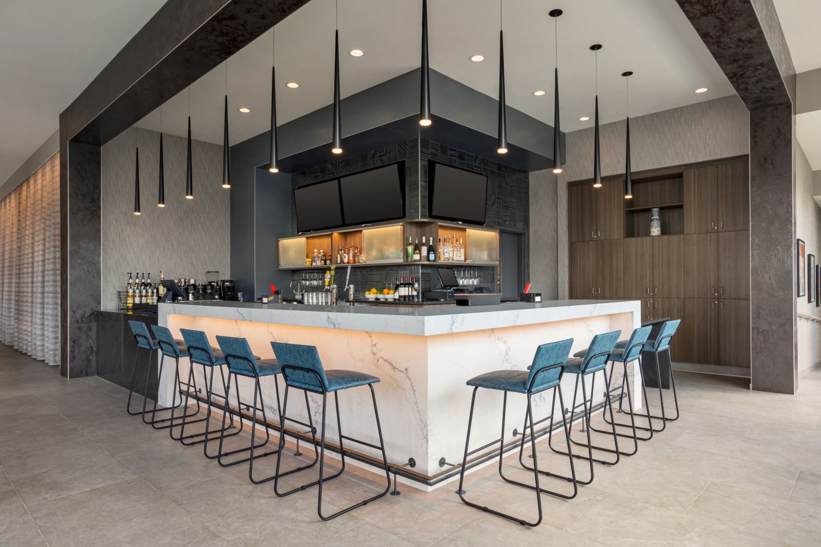 The Home2 Suites is also connected to the Hampton Inn & Suites offering a dual property experience. This enhances the guest stay with double the amenities and access to the Hampton Inn & Suites Indoor Pool/Hot Tub. We offer a complimentary hot/cold breakfast buffet daily, guestroom Wi-Fi, access to the Business Center, Fitness Center, as well as complimentary Guest Laundry on site. We also offer complimentary hotel shuttle service within a limited area based on availability. The Brew2 Bar and Café in the Lobby opens at 4:00pm daily which offers beverages and a light menu of options for purchase.