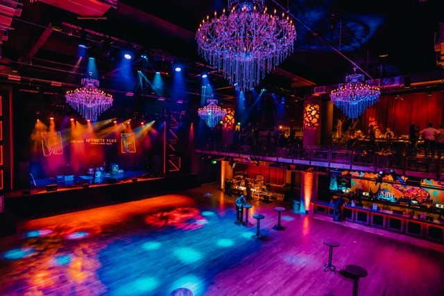 Filled with flexible seating, drink rails, bar area, cocktail rounds and comfortable seating, with the best site lines to the stage!